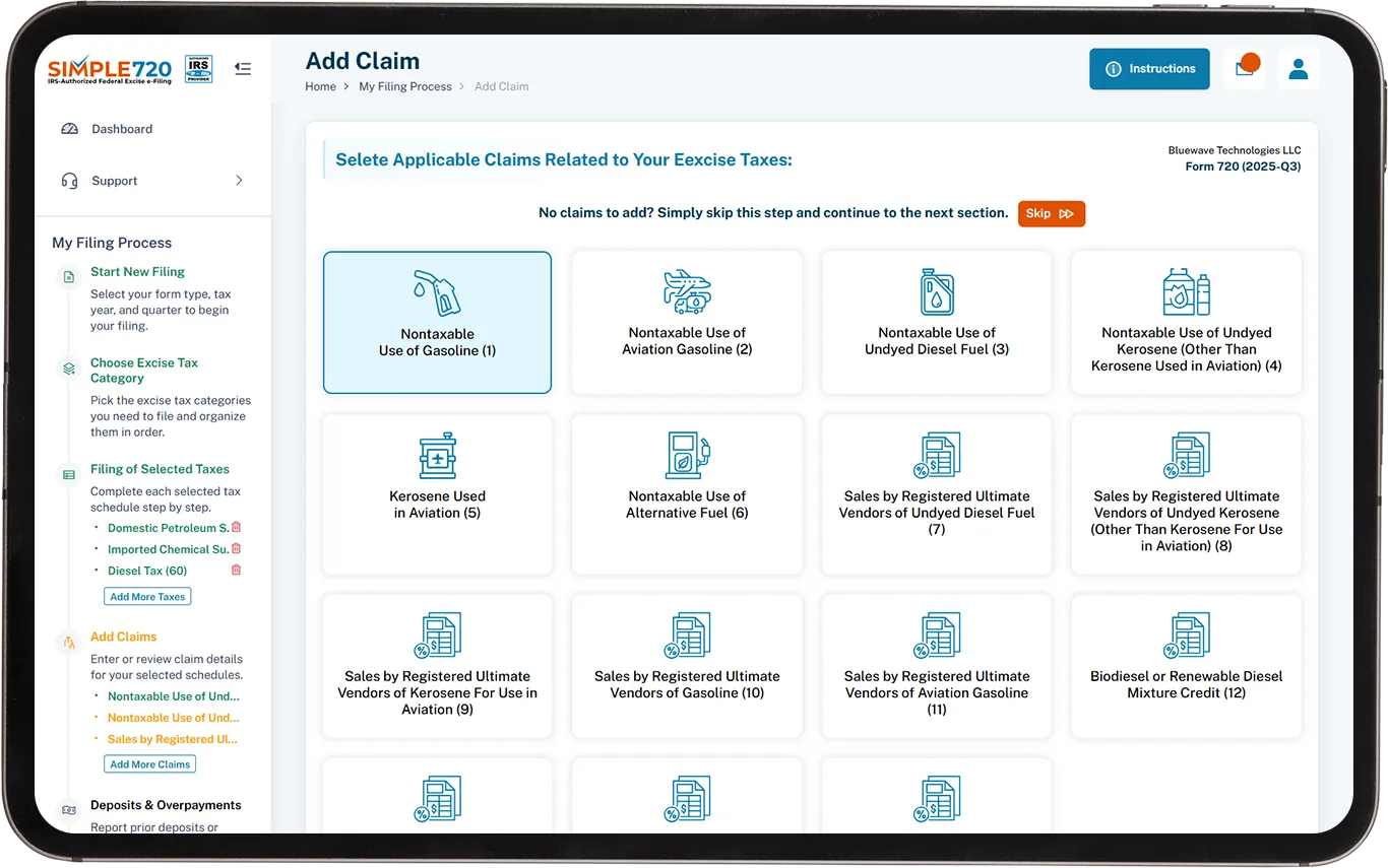 Simple720's clear classification and easy navigation made submitting my Nontaxable Use of Gasoline claim fast and error-free.